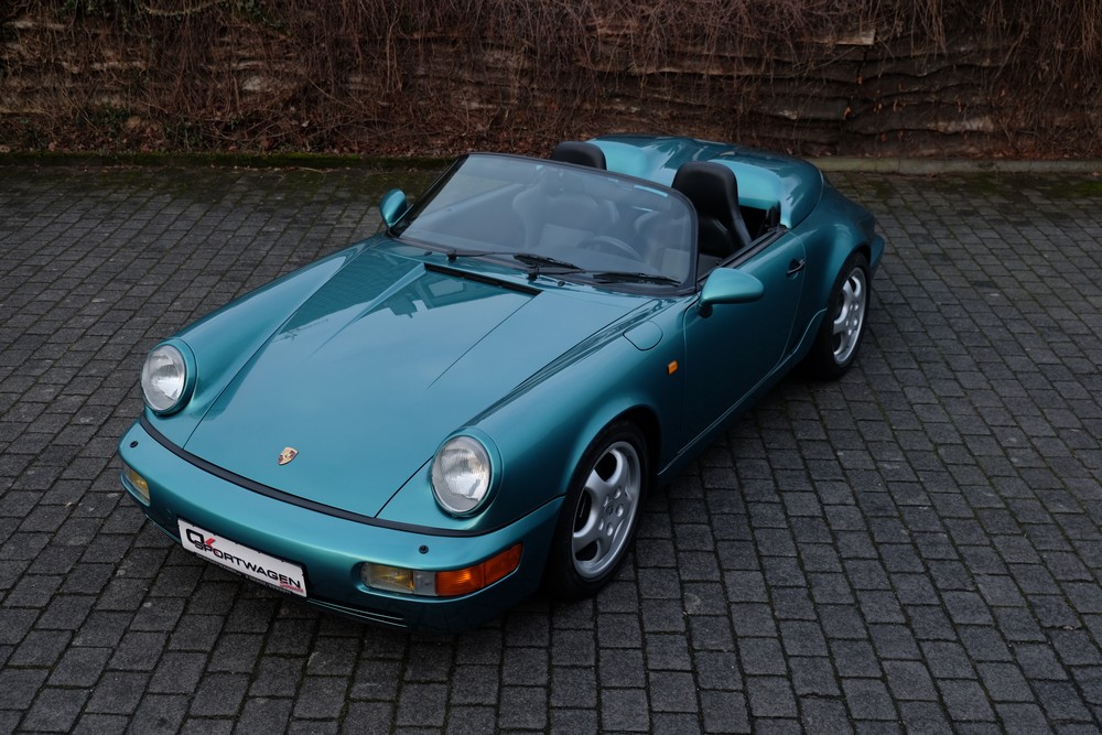 Angeboten wird ein Porsche 964 Carrera 2 Speedster in der äußerst seltenen Sonderfarbe Wimbledon Grün Metallic mit schwarzer Lederausstattung in RS-Ausführung inklusive originaler Schalensitze. Das Fahrzeug befindet sich in einem sehr gepflegten und originalnahen Zustand, sowohl optisch als auch technisch.